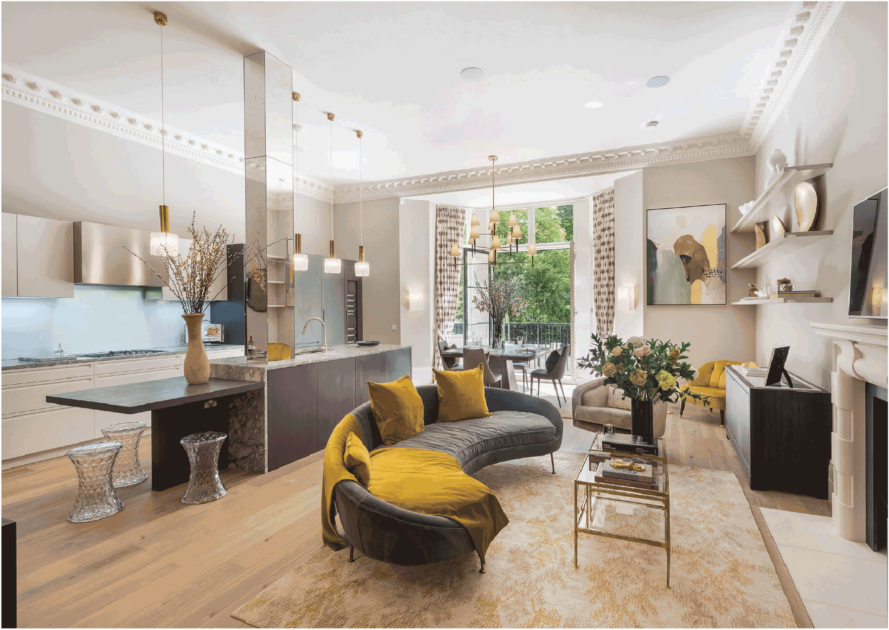 Creation of a 15,000 sq ft house (No. 4) with a GDV of £60 mill with a subterranean swimming pool, terraces and extravagant finish. We also developed two large lateral flats (Nos. 3 & 5) either side of 2,500 sq ft and 2,900 sq ft.